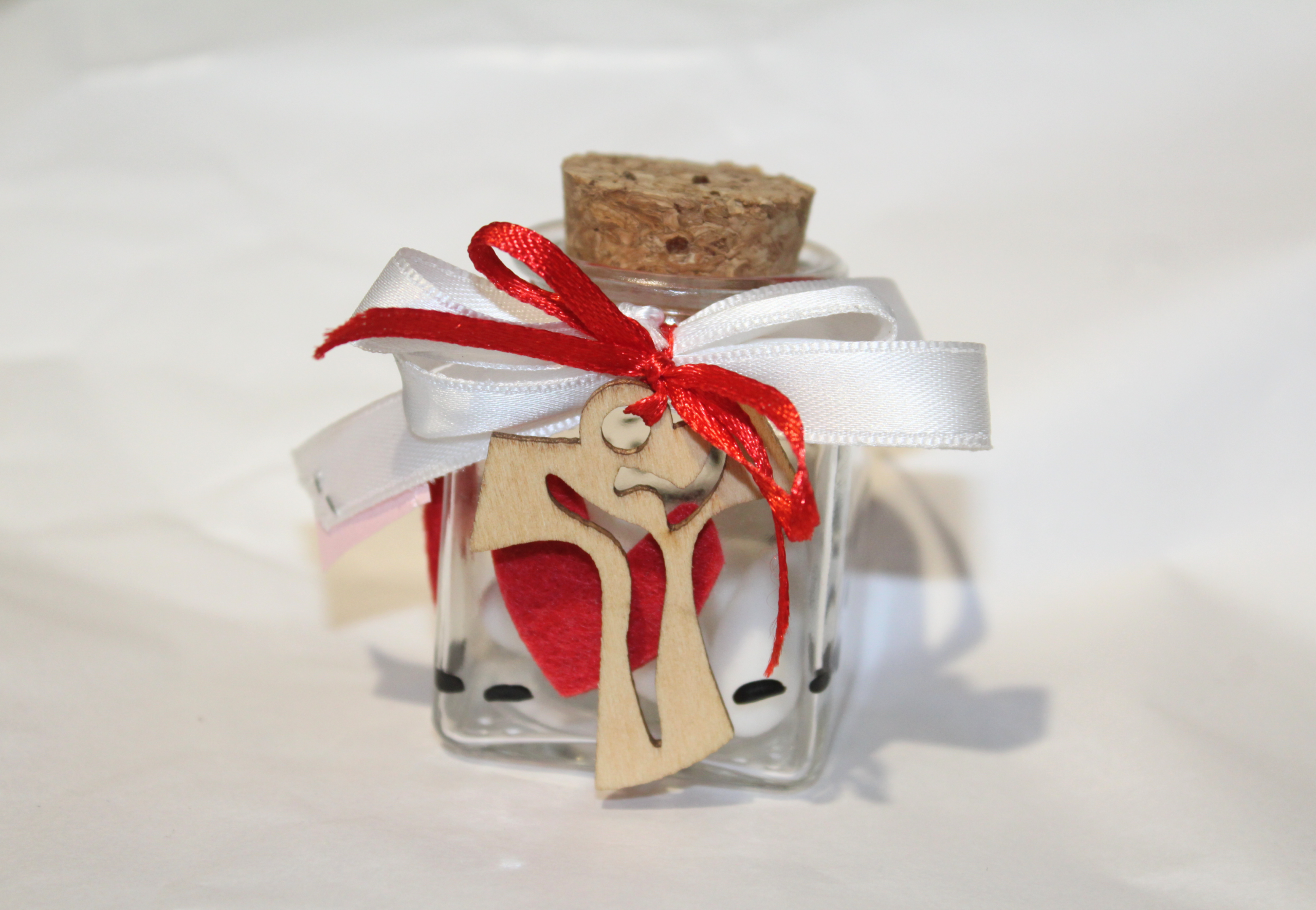 Potrai personalizzare con il nome e la data il tuo biglietto all’interno. In ogni pezzo, oltre a metterci tanta passione, mettiamo anche il nostro piccolo fogliettino che racconterà ai tuoi ospiti il senso di queste bomboniere indicando il fine ultimo del ricavato. Ogni articolo è un pezzo unico.