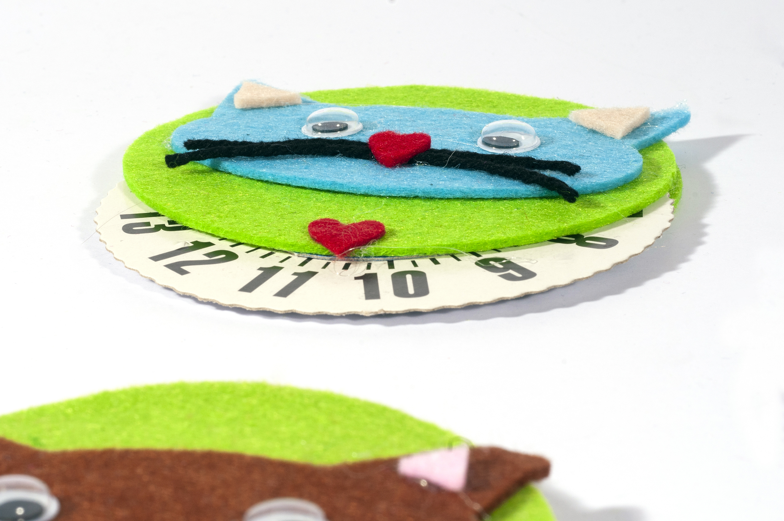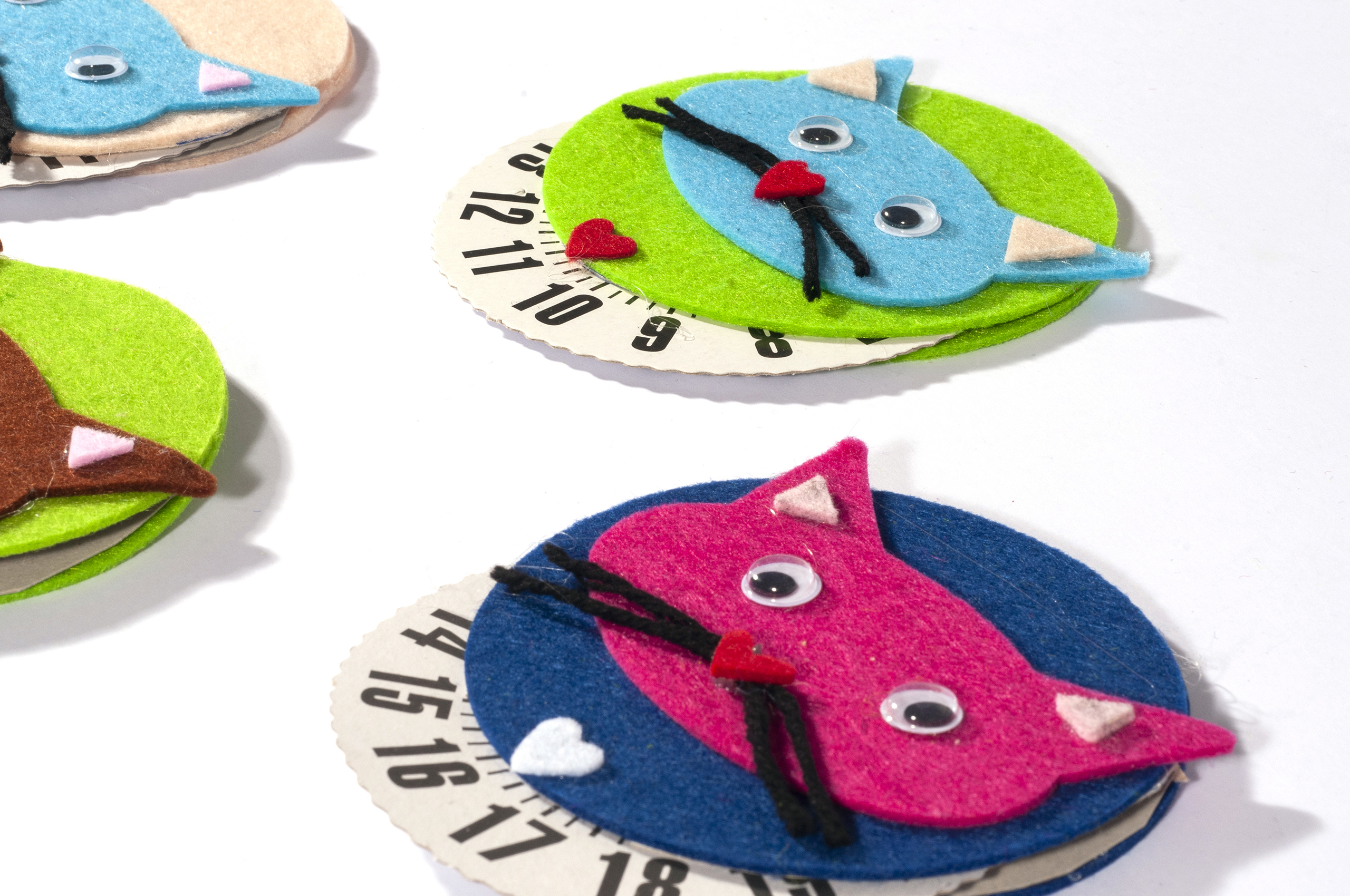 Disco orario in cartone e feltro decorato con varie forme e colori. Ideale per segnare il tempo di permanenza nel parcheggio.