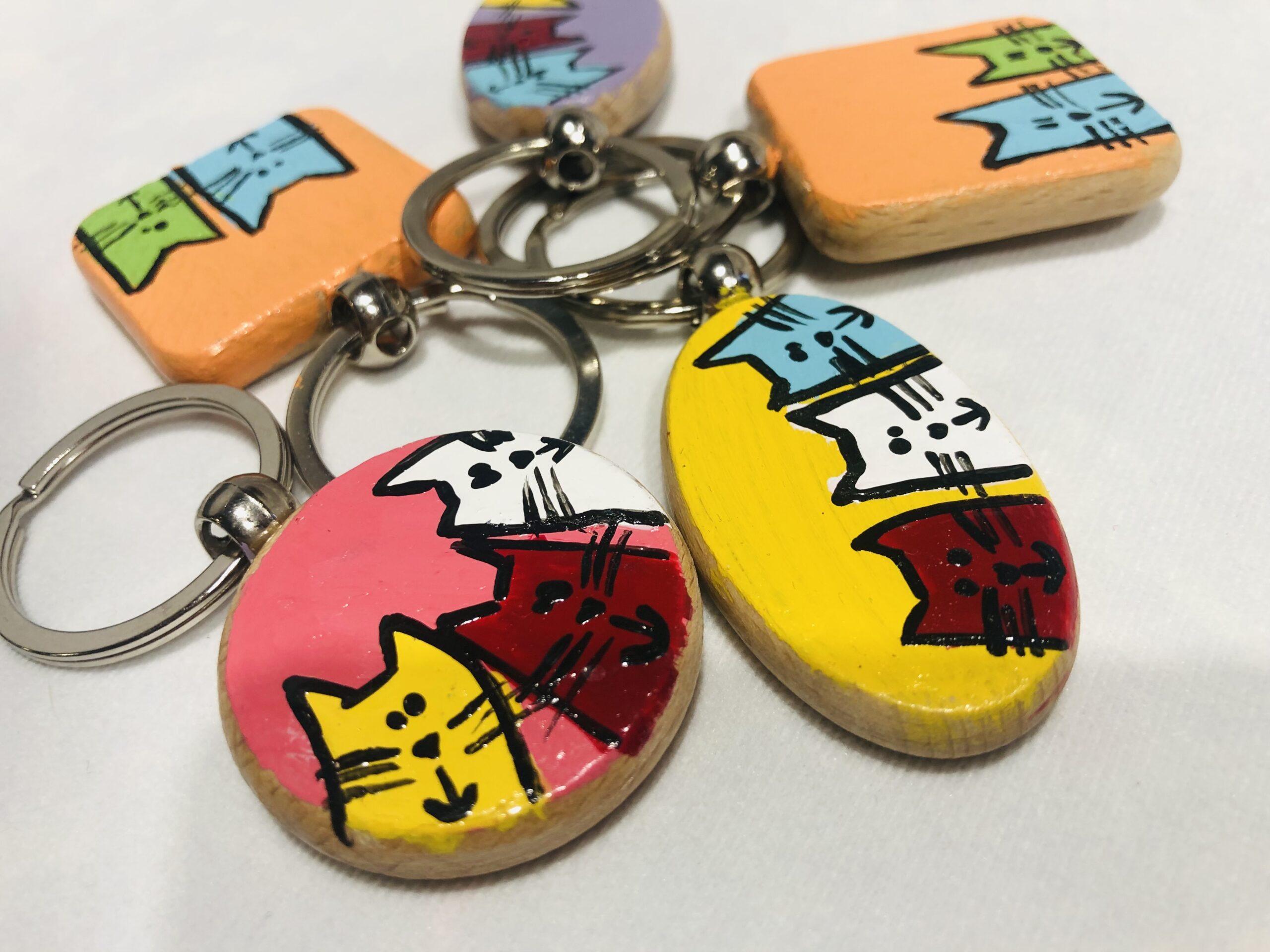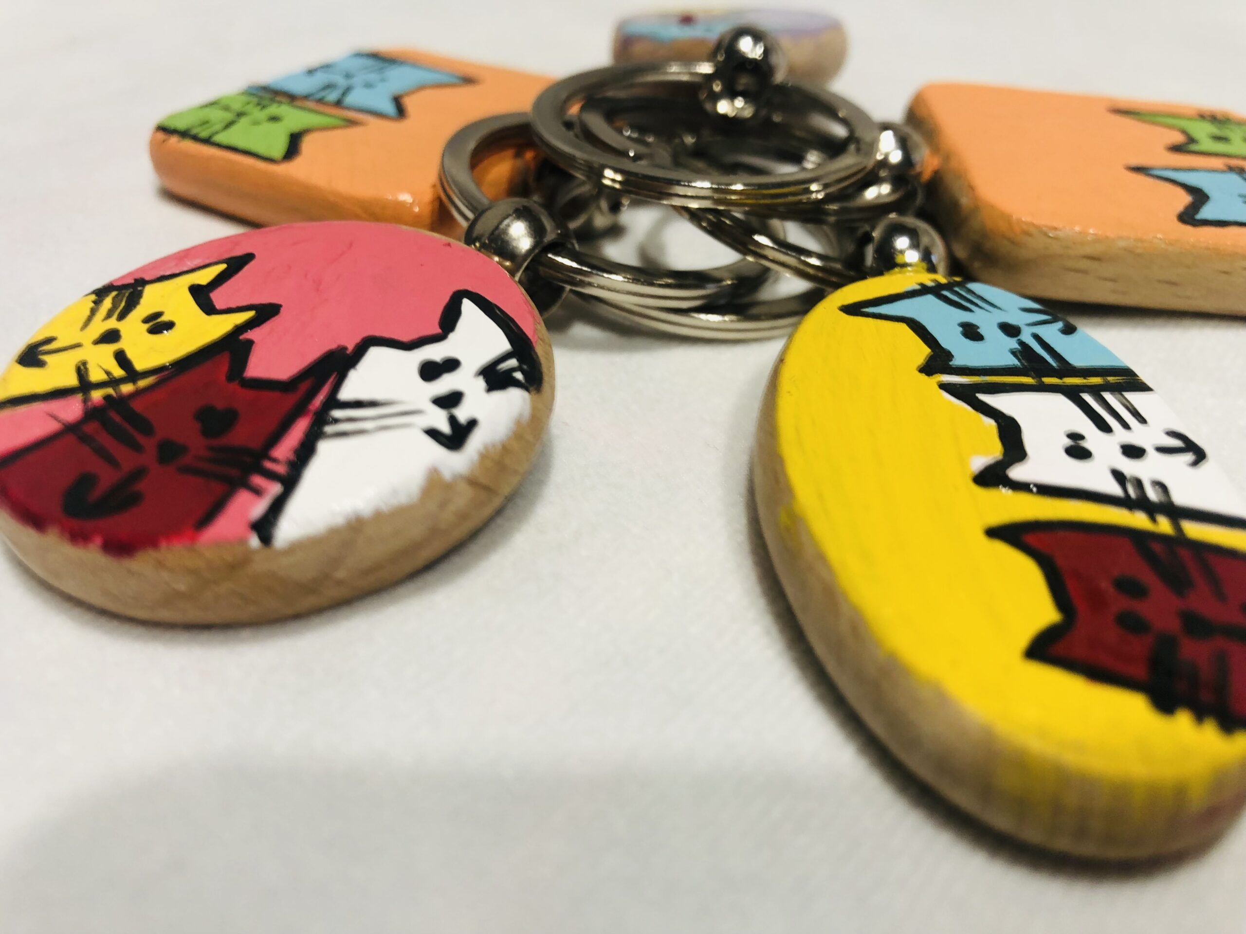 Grazioso portachiavi in legno. Perfetti per recuperare facilmente le chiavi in borsa e per distinguersi con un tocco inconfondibile di colore. Ottimo regalo per qualsiasi occasione. Questi oggetti sono pezzi unici e per questo tutti diversi